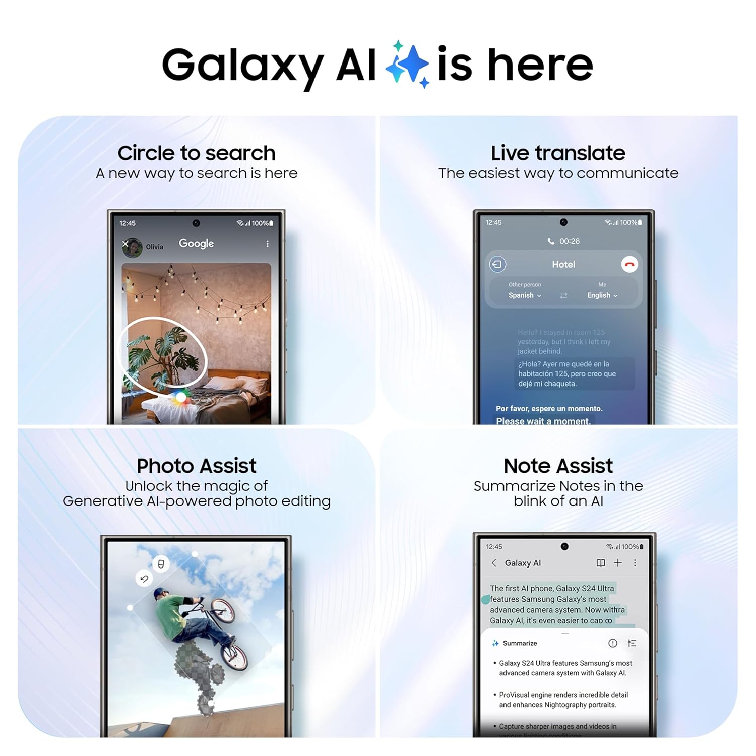 Packed with a 5000mAh battery, stylus support, and cutting-edge connectivity, the Galaxy S24 Ultra is built for creators, gamers, and power users alike.